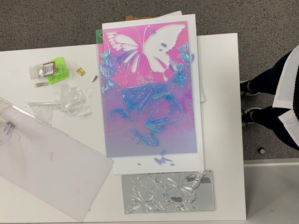 Laser cut holographic Acrylic with hinges: