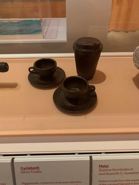 I was fascinated by the transformative use of waste products into usable objects. Kaffeeform uses compacted and processed coffee grounds in the production of coffee cups, while the Cyclebank piggybank can be smashed and sown to grow plants from seeds embedded within the fibers of the material. While Kaffeeform utilizes the waste from coffee, to produce vessels for coffee, the Cyclebank is a cycle from tea plants, to be utilized as a temporary functional objects, and finally returned to the soil in the production of plants. It made me think about the life cycle of popularly consumed products, apart from the duration of use and permanence of waste generated everyday foods.
