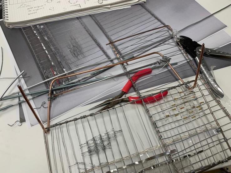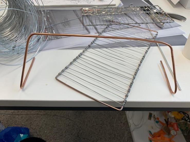 Trying to work on the structure of the handbag till I can develop a vocabulary for the aesthetic for the weave.. Wrapping found (and borrowed) wire and rods towards the structure is a complex and time consuming process, I should probably weld metal rods for next time, as they would not only be more consistent in their aesthetics, but also safer for use, due to avoidance of sharp edges.