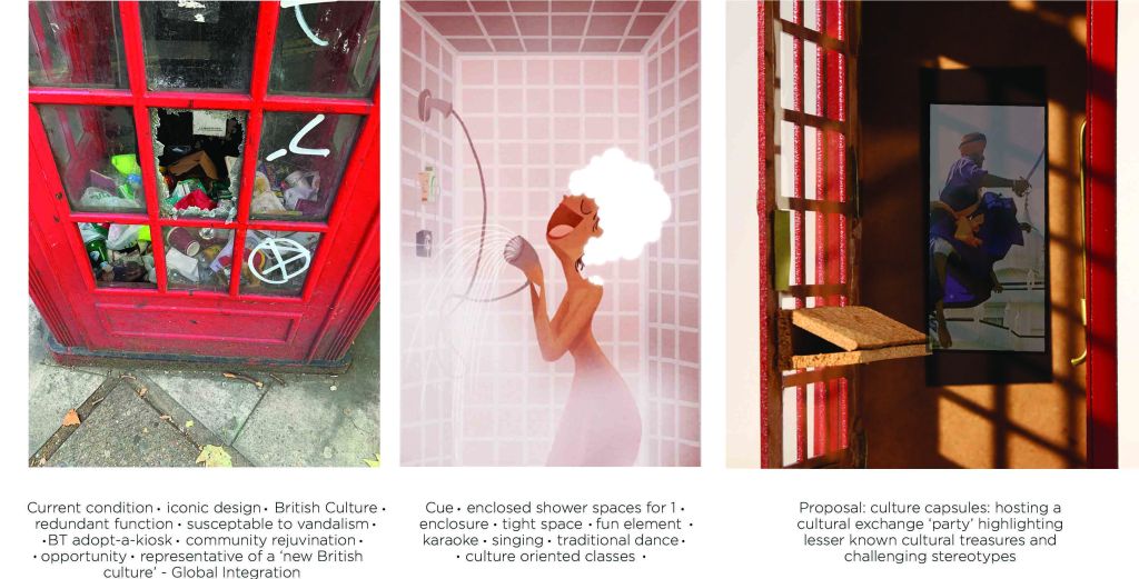 London telephone boxes – precedents in adaptive reuse, other functional spaces of similar scale: Coffee bar, Office pod, Karaoke booth