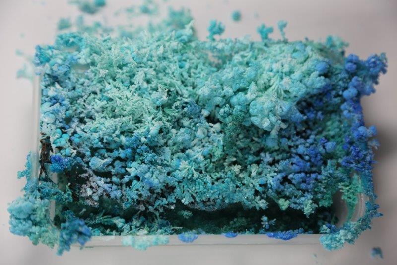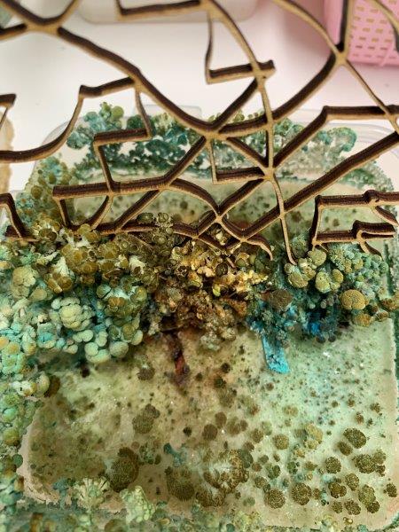 Copper sulphate crystallization on a found twig