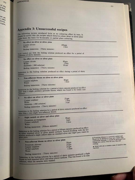The copper recipes employed some chemicals that might potentially be hazardous, especially undertaken without proper ventilation and safety equipment..